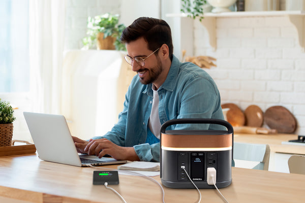 Duracell Portable Power Station outside charging multiple devices including a slow cooker and portable fan