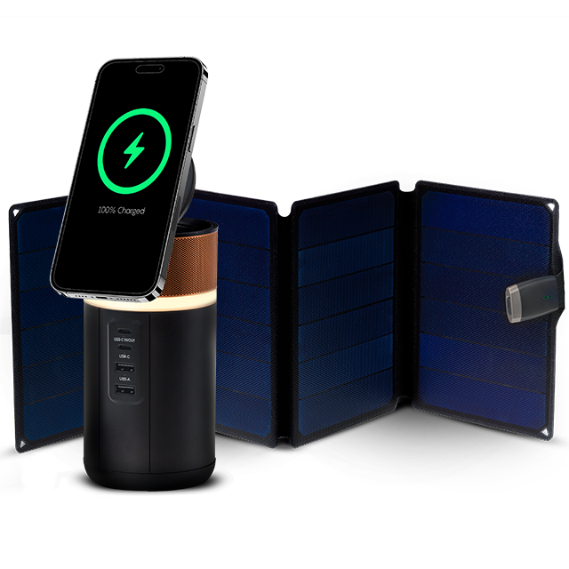 Power phones, tablets, laptops—any of the small devices you need—for work and for life. Lightweight and compact, the M150 features a tiltable device holder with wireless phone charging, a cord storage unit, a dimmable ring light, and packs in 150 watts of power. It also comes with a charging dock ($39 value). Pair the M150 with the M-Solar Panel to recharge while you're outdoors or facing a power outage. Access sustainable portable power whenever you need it.