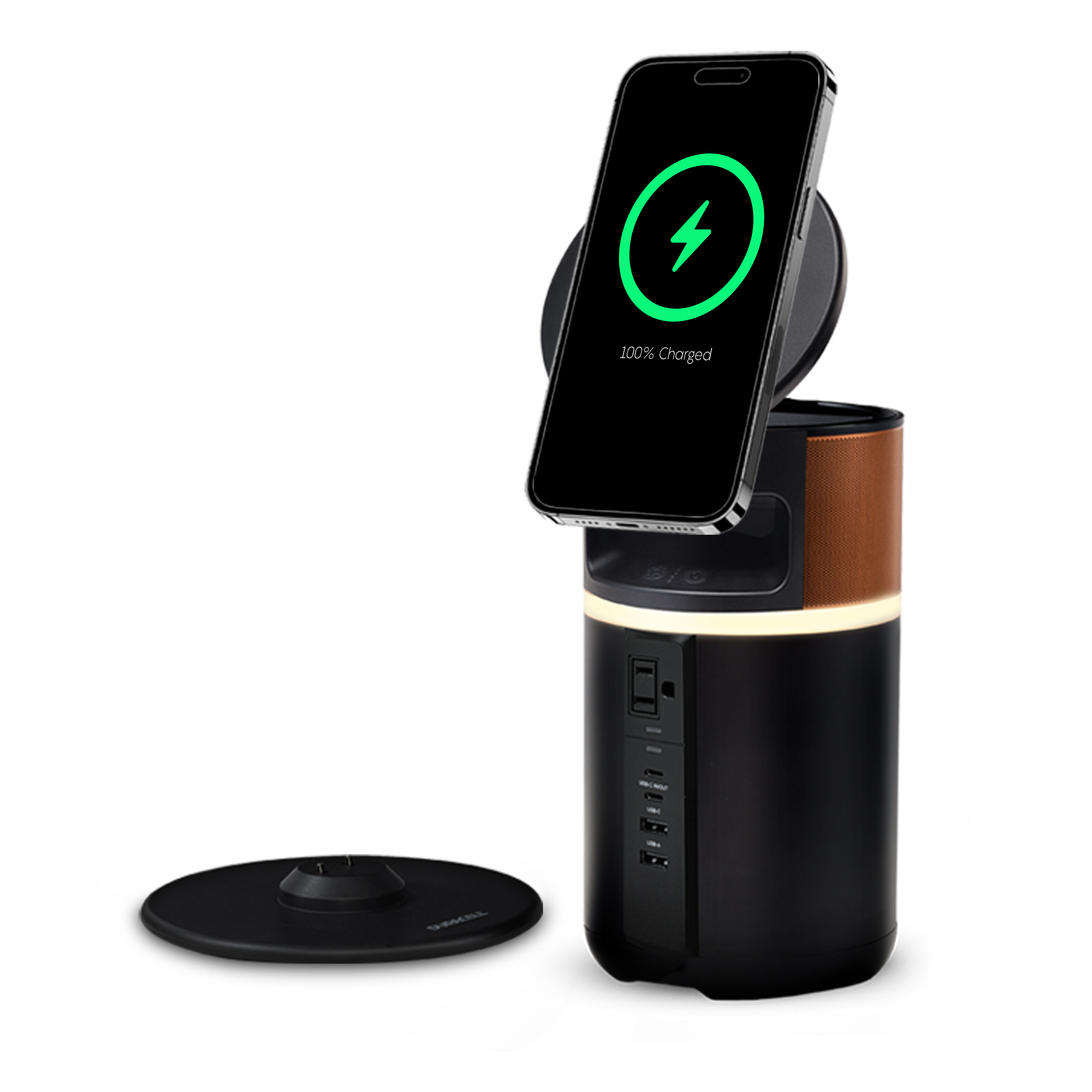 Power phones, tablets, laptops—any of the small devices you need—for work and for life. Lightweight and compact, the M250 features a tiltable device holder with wireless phone charging, a cord storage unit, a dimmable ring light, and packs in 250 watts of power. It also comes with a charging dock ($39 value). You no longer need to be tethered to the wall now that you have portable power for your work and leisure activities. Power the possibilities.